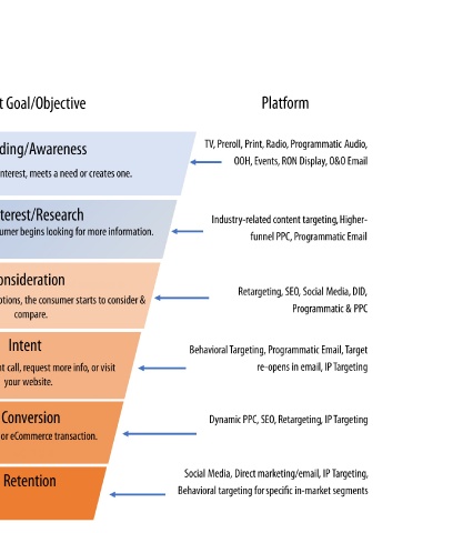 Clicks,Visits to inventory pages After discovering the options, the consumer starts to consider & Programmatic & PPC