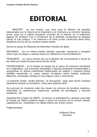 Arq u i tecto I m h o p et Revi sta M a só n i ca EDITORIAL