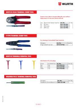 Size Deutsch Solid Terminal Crimp Tool Art. No. P. Qty.