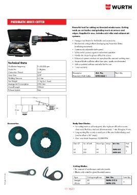 Technical Data • Because blade oscillates rather than spins, sparks are eliminated.