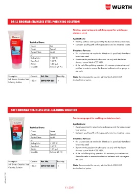 Density 1.63 kg/L • At the end of the polishing operation it is necessary to rinse the weld