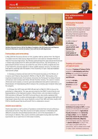 Alumni associations in all countries of operation conducted their annual conferences and produced reports. They have proven to be highly practical in networking with di erent universities and professional associations, and in the dissemination of technologies to farmers. Many alumni members participated during eld-level SEPs supervisions as co-supervisors to mid-career students.