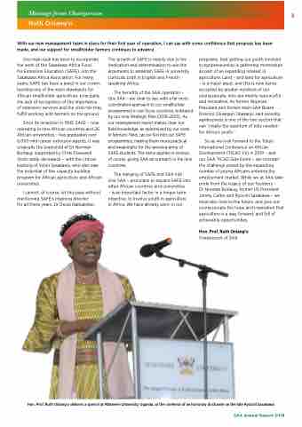 for Extension Education (SAFE), into the Sasakawa Africa Association. For many years, SAFE has been a jewel in our crown, tackling one of the main drawbacks for African smallholder agriculture: principally the lack of recognition of the importance of extension services and the vital role they ful ll working with farmers on the ground.