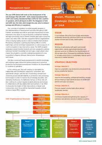 The year 2018 started with work on the development of the SAA Strategic Plan (SP) 2019 – 2023, Global Operational Plan (GOP) and Country Operational Plans (COPs) for SAA countries of operation, which will launch in 2019. The integration of SAA and SAFE into One SAA, which began this year, aims to enhance synergy and e ciency in operations.