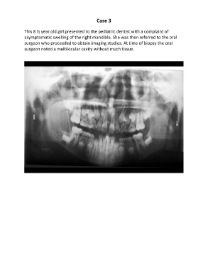 asymptomatic swelling of the right mandible. She was then referred to the oral