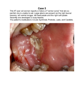 painful, she is unable to eat. Large ulcers are present on the right buccal
