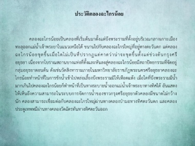 ให้เห็นถึงความสามารถในระบบการจัดการน้ําของชาวกรุงศรีอยุธยาตัวคลองมีขนาดไม่กว้าง