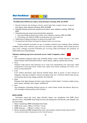 Mendiskusikan definisi pola makan, menu makanan seimbang, BMI, dan BMR