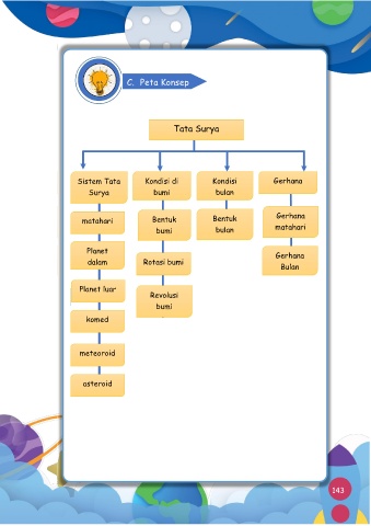 C. Peta Konsep Tata Surya Sistem Tata Kondisi di Kondisi Gerhana Surya bumi bulan Gerhana matahari Bentuk Bentuk bumi bulan matahari Planet dalam Rotasi bumi Gerhana Bulan Planet luar Revolusi bumi komed meteoroid asteroid 143