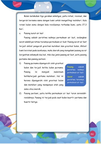 Bulan melakukan tiga gerakan sekaligus, yaitu rotasi, revolusi, dan