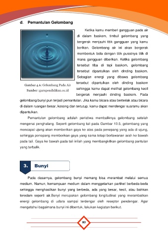 mengenai penghalang. Seperti gelombang tali pada Gambar 10.5, gelombang yang