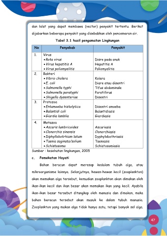 dijabarkan beberapa penyakit yang disebabkan oleh pencemaran air.
