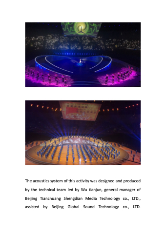 The acoustics system of this activity was designed and produced by the technical team led by Wu tianjun, general manager of Beijing Tianchuang Shengdian Media Technology co., LTD., assisted by Beijing Global Sound Technology co., LTD.