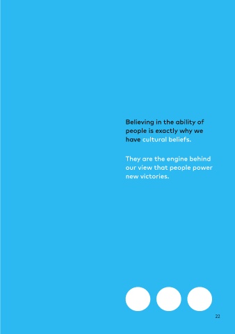 Believing in the ability of people is exactly why we have cultural beliefs. They are the engine behind our view that people power new victories. 22