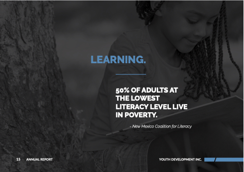 LEARNING 50% OF ADULTS AT THE LOWEST LITERACY LEVEL LIVE IN POVERTY - New Mexico Coalition for Literacy 15 ANNUAL REPORT YOUTH DEVELOPMENT INC