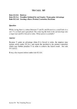 sail. Y is at fault and is penalized. On a later leg the hole in the sail develops into
