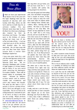 I have now come home for a rest around the Club room they will to take over from Liam, the social