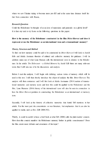 used in this text. I will then shortly introduce the object of analysis the film Bitter Harvest. The