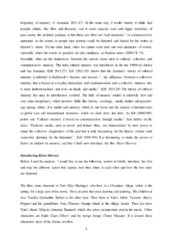 fiction in relation to memory and thus I shall now introduce the film Bitter Harvest.