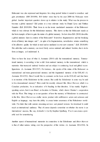 Another aspect of transnational memories in connection to the Holodomor and Bitter Harvest