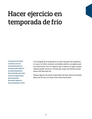 Con la bajada de la temperatura nos dan más ganas de quedarnos en casa en el sillón, tomando una bebida caliente y arropados para nos enfermarnos. Pero no dejemos que el reposo nos gane, porque todavía quedan opciones y formas para seguir ejercitando aunque afuera esté haciendo frío.