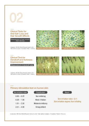 Total number of subjects : 46 persons / Period : 4 weeks ] Shampoo excluded active ingredients Damoae Therapy Gold Shampoo