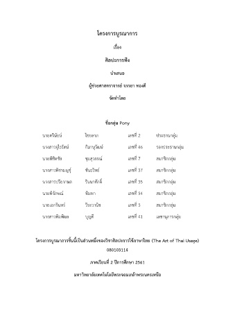 โครงการบูรณาการชิ้นนี้เป็นส่วนหนึ่งของวิชาศิลปะการใช้ภาษาไทย (The Art of Thai Usage)