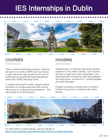 will earn 8-12 credits of INTR and may choose residence in the center of Dublin. Each student