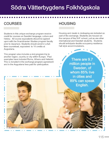 credit for courses on Swedish language, culture and part of the exchange. Students are housed on