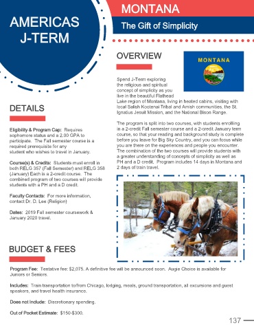 DETAILS local Salish Kootenai Tribal and Amish communities, the St.