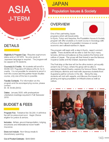 status and a 2.00 GPA. No prior study of culture of Japan. The group will then travel to see the famous