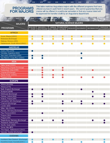 PROGRAMS This table matches Augustana majors with the different programs that have