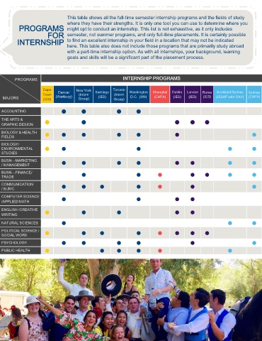 This table shows all the full-time semester internship programs and the fields of study