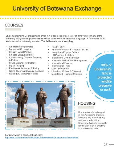 university’s English-taught courses as well as coursework in Setswana language. A full course list is