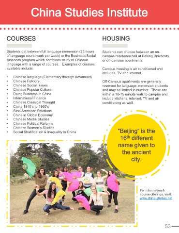 of language coursework per week) or the Business/Social campus residence hall at Peking University