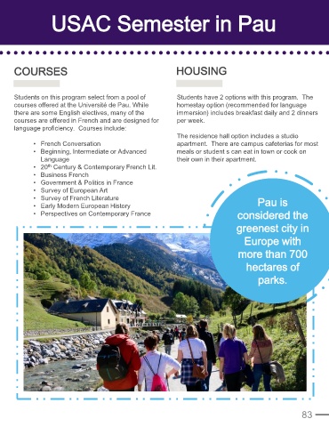 courses offered at the Université de Pau. While homestay option (recommended for language