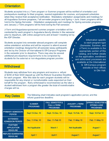 Students accepted into a J-Term program or Summer program will be notified of orientation and