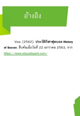 อ้ำงอิง Visa. (2562). ประวัติกีฬาฟุตบอล History of Soccer. สืบค้นเมื่อวันที่ 22 มกรำคม 2563, จำก https://www.educatepark.com/ 21