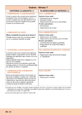 (1) Q uelle que soit la filière, les quatre critères classants viennent en appui de l’emploi repère. Ils permettent