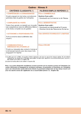 (1) Q uelle que soit la filière, les quatre critères classants viennent en appui de l’emploi repère. Ils permettent