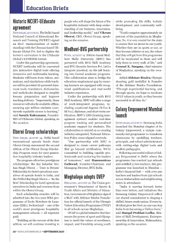 National Council of Educational Re- Oberoi, CEO, Oberoi Group, speak- percent of the population in Megha-