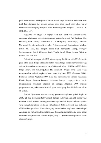 (2016) dalam penelitian disertasinya yang menyebutkan Angkatan 2000 sebagai