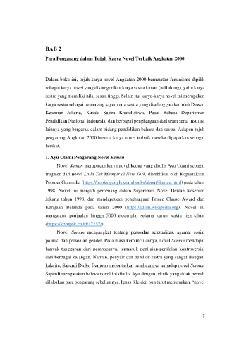 Dalam buku ini, tujuh karya novel Angkatan 2000 bermuatan feminisme dipilih