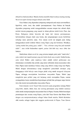 Ironi dramatis novel Tanah Tabu tercermin pada pengisahan tentang Mabel