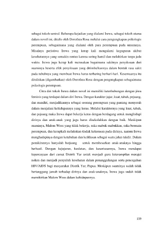 Citra diri tokoh Irewa dalam novel ini memiliki keterhubungan dengan jiwa