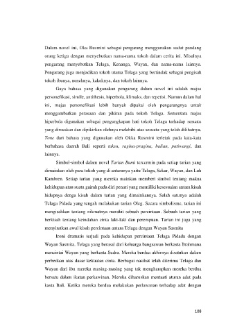 Simbol-simbol dalam novel Tarian Bumi tercermin pada setiap tarian yang