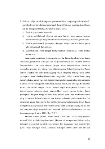 perempuan. Pengaruh fungsionalisme dapat ditemui pada aliran feminisme liberal