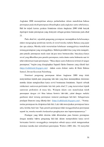 Hal  itu  terjadi  karena  gerakan  feminisme  dalam  Angkatan  2000  lebih  banyak