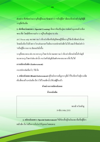 ระบุชื่อธนำคำร เช่น ธนำคำรกรุงไทย จ ำกัด หมำยควำมว่ำ ต้องน ำเช็คฉบับนี้เข้ำบัญชี