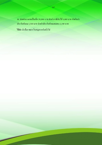 117 10. จ่ำยค่ำแรงงำนเป็นเช็ค 50,000 บำท หักค่ำภำษีเงินได้ 4,000 บำท หักเงินค่ำ ประกันสังคม 2,300 บำท จ่ำยค่ำประกันสังคมสมทบ 2,300 บำท ให้ท ำ บันทึกรำยกำรในสมุดรำยวันทั่วไป